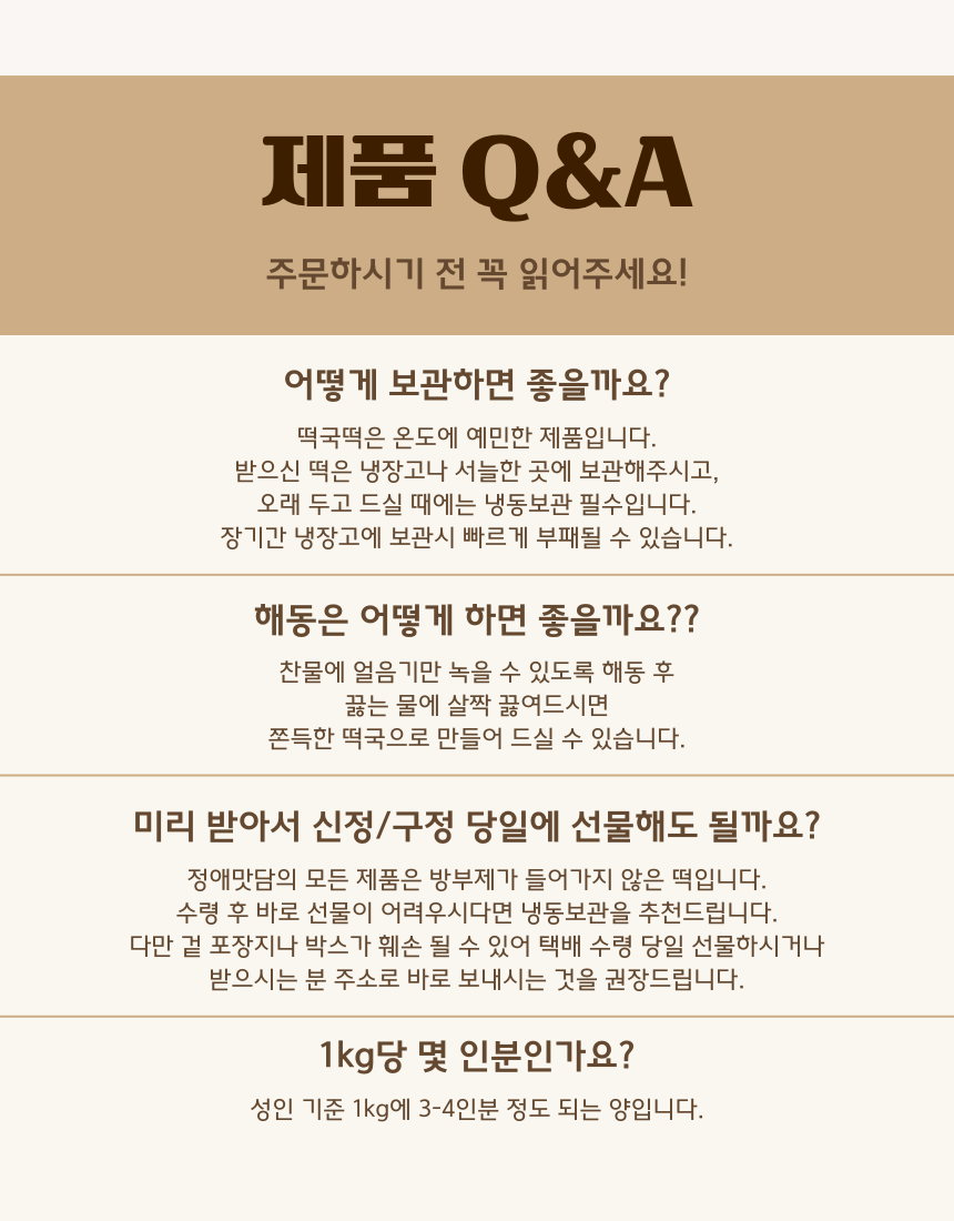 ★ 방부제가 들어가지 않은 신선식품(떡)입니다