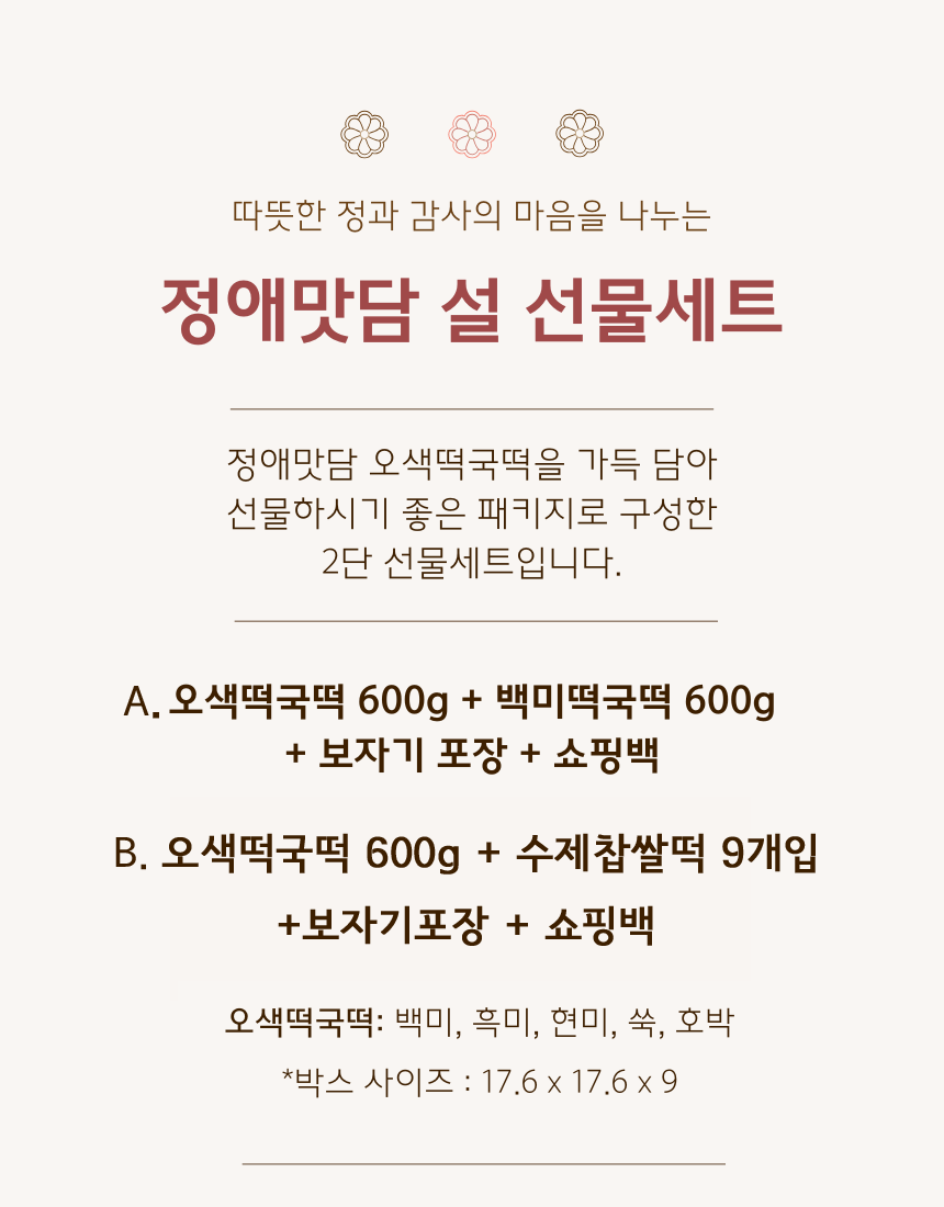 2)수제찹쌀떡+오색떡국세트 56,000원입니다.