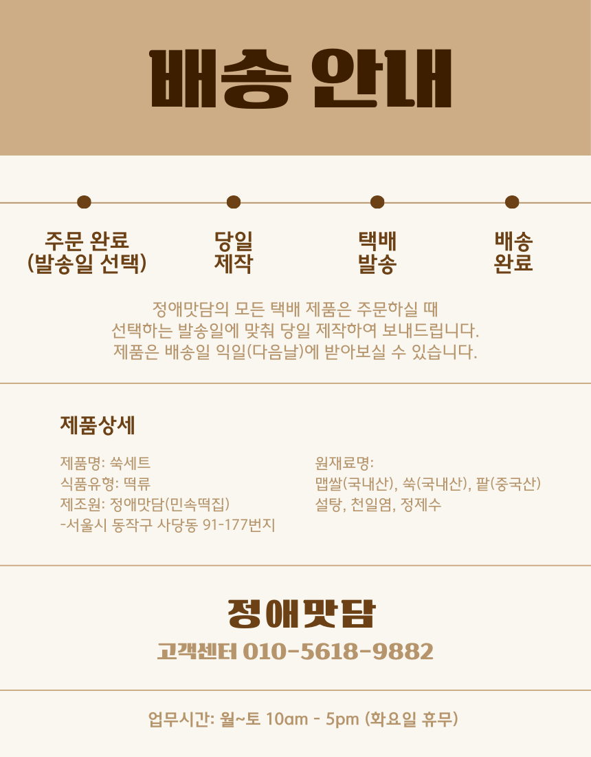 멥쌀(국내산) 55.12% , 쑥(국내산) 11.02% 팥 (중국산) 27.56% , 설탕 5.51% , 천일염 , 정제수