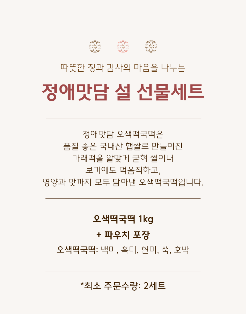 ex ) 오색떡국 2개 주문원할시
