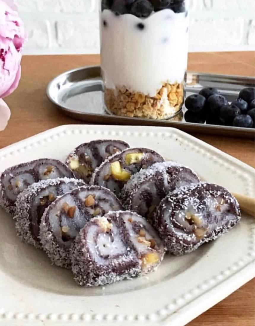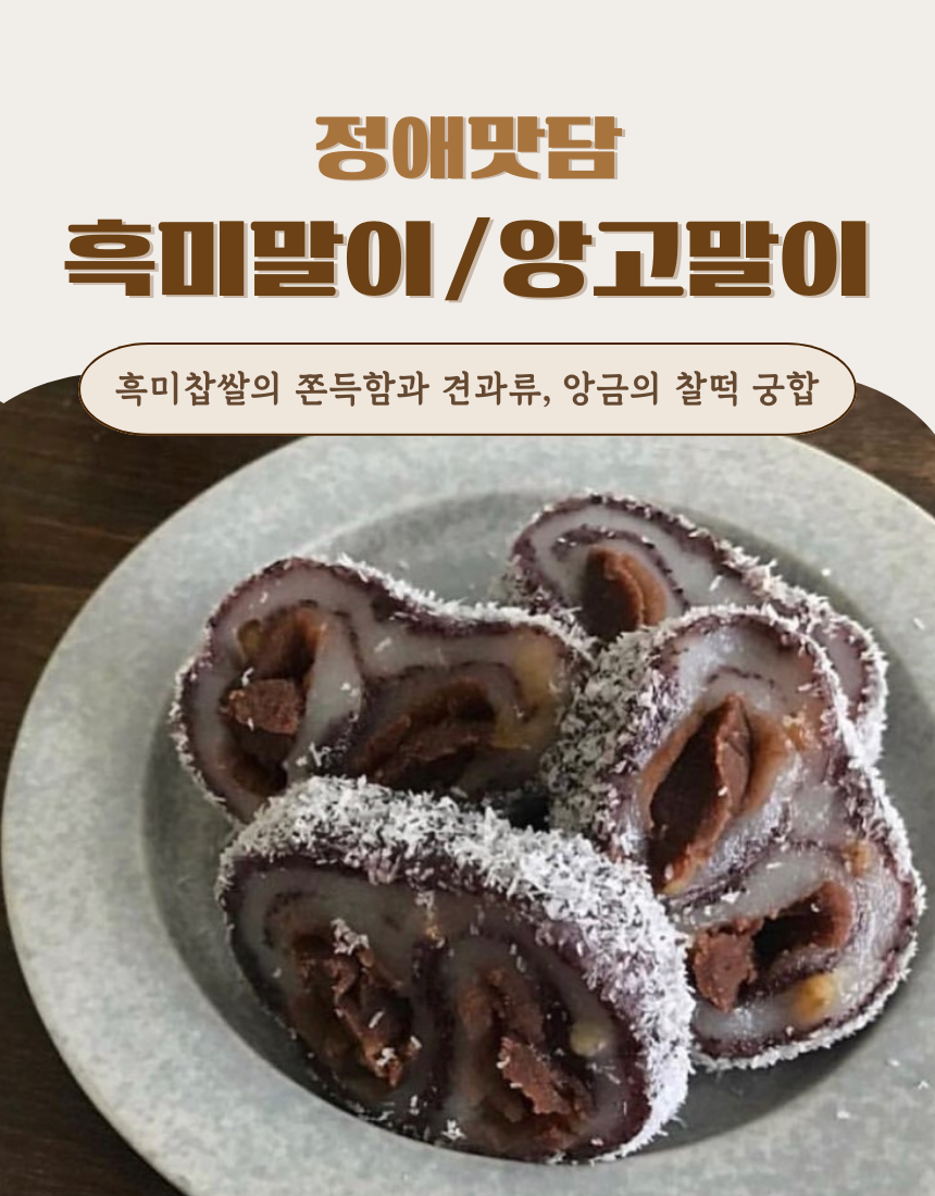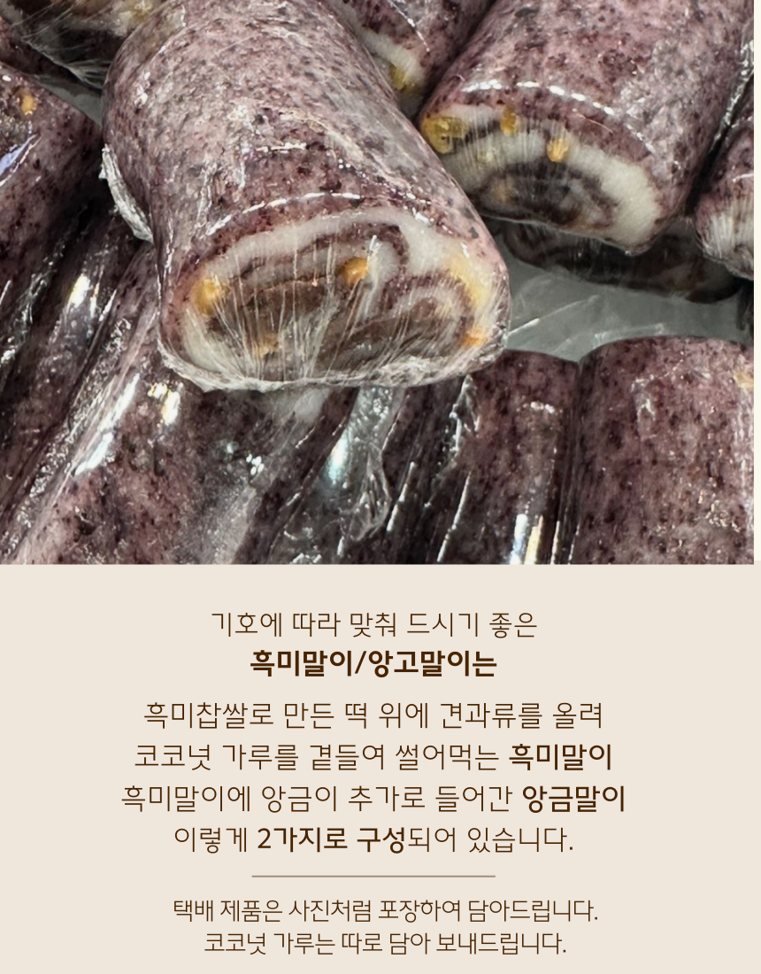 흑미말이:찹쌀71.99%(국내산),흑미찹쌀17.99%(국내산),호두4.49%(외국산),땅콩4.49%,소금1%