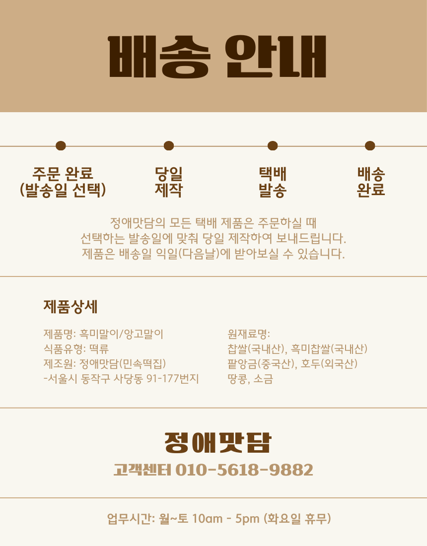 앙고말이:찹쌀63.93%(국내산),흑미찹쌀15.98%(국내산),팥앙금11.18%(중국산),땅콩3.99%,호두3.99%,소금0.89%